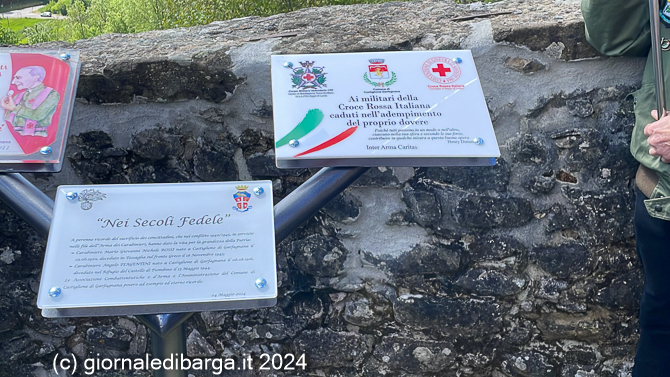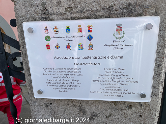 Per quanto riguarda la Croce Rossa Italiana ed il Corpo Militare, questa è la prima targa che viene inaugurata in provincia di Lucca dedicata alla memoria dei suoi militari caduti. Indubbiamente un importante gesto di attenzione e di riconoscenza che è venuto dall’Amministrazione Comunale di Castiglione Garfagnana, con la quale ha collaborato alacremente al raggiungimento di questo risultato, il Nucleo Arruolamento e Attività promozionali del Corpo Militare, ufficio di Bagni di Lucca con il supporto del Comitato Cri di Bagni di Lucca.