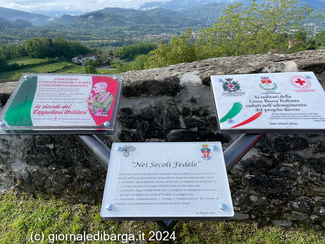 Nel ventesimo anniversario del recupero del Parco della Rimembranza di Castiglione Garfagnana, nell’ameno borgo garfagnino una cerimonia in cui è stata inaugurata l’altana dei cimeli di “Cielo-Mare-Terra” grazie alle donazioni venute da Marina, Aeronautica ed Esercito, ma si è voluto anche onorare in modo ancor più significativo i caduti di tutte le guerre: accanto alle lapidi ed alle targhe già presenti, sono state scoperte due targhe dedicate ai caduti dell’Arma dei Carabinieri ed ai caduti tra i militari della Croce Rossa Italiana.