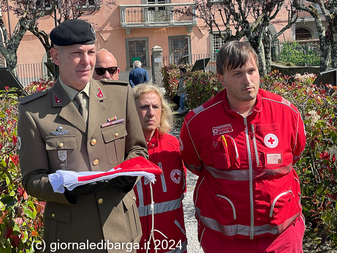 Era presenta anche il presidente del Comitato CRI di Bagni di Lucca Moreno Fabbri che ha donato al sindaco di Castiglione Michele Gaspari la bandiera di Croce Rossa, da esporre sulla facciata del comune l’8 maggio, nella giornata mondiale della Croce Rossa e della Mezzaluna Rossa.