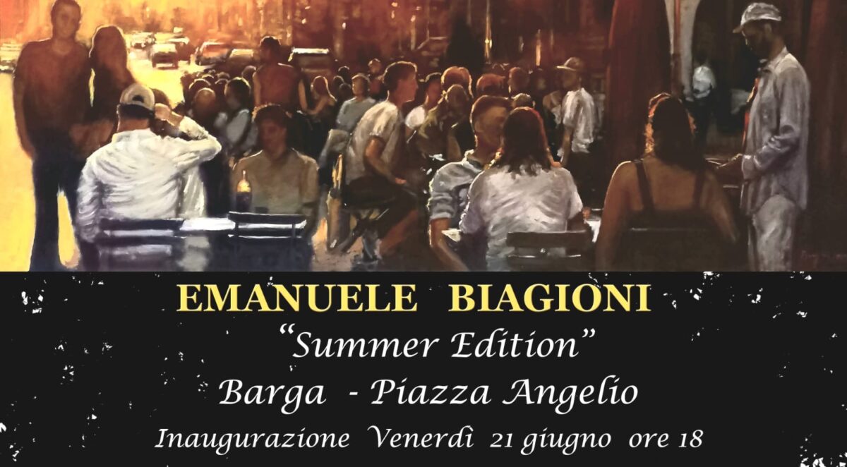 BARGA – Venerdì 21 giugno alle ore 18 in piazza Angelio inauguro l’esposizione Summer edition di Emanuele Biagioni; sarà aperta per tutta la stagione estiva. Verranno proposte le opere realizzate negli ultimi due anni più qualche classico raffigurante Barga. La maggior parte delle opere raccontano storie di vita quotidiana, di passione di dubbi, storie di inquietudine, storie di metropoli, di traffico, di città.