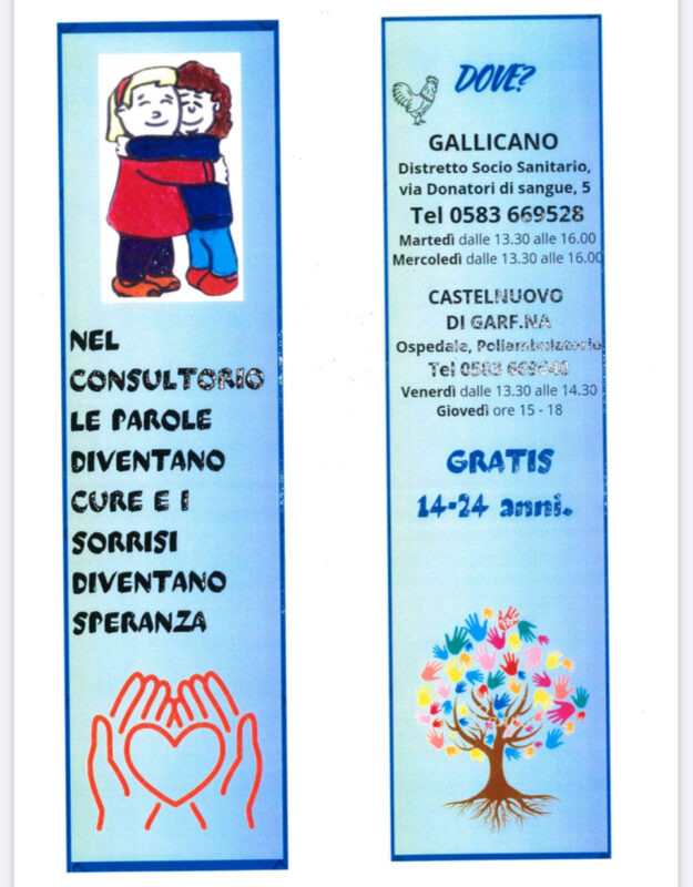 Tutti i segnalibri realizzati dagli studenti della Valle del Serchio saranno comunque stampati e diffusi, proprio a sottolineare la volontà di far conoscere, attraverso il linguaggio dei ragazzi, il Consultorio giovani come uno spazio rivolto esclusivamente ai giovani dai 13 ai 25 anni e alle loro problematiche.