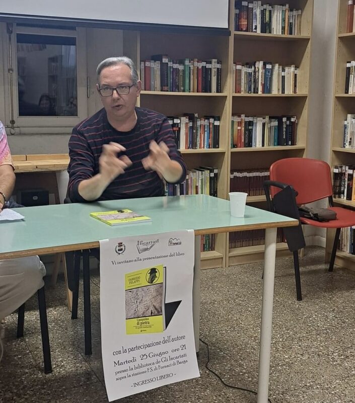 Presso la biblioteca Degli Incartati di Fornaci di Barga, complice anche la pioggia battente che ha reso l’incontro più intimo ed accogliente, Fabrizio Felappi ha presentato con brio e simpatia il suo libro “L’Assassino di pietra”.