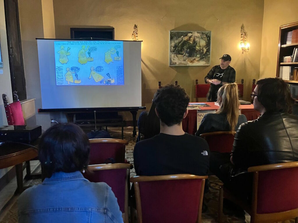 BARGA – Ragazze e ragazzi a lezione di fumetto e graphic novelism per la mostra “Nazareno Giusti. Il poeta dei colori e delle parole” alla Fondazione Ricci di Barga. Sono 200 le alunne e gli alunni delle scuole medie di Barga (prime, seconde e terze A e B, accompagnate dalla professoressa Francesca Funai) e dell’ISI Barga (le quarte degli indirizzi linguistico e scienze umane, accompagnati dalla professoressa Rosita Canini) che stanno partecipando in questi giorni alle visite e ai laboratori tenuti da David “Bigo” Bigotti e da Riccardo Pieruccini appositamente organizzati per far conoscere ai più giovani questa forma di arte ed espressione, applicata all’arte, alla narrativa e al giornalismo e la produzione di Nazareno Giusti. (In allegato, foto del laboratorio tenuto da Bigotti alle IV linguistico e scienze umane dell’ISI Barga, mercoledì 5 giugno).