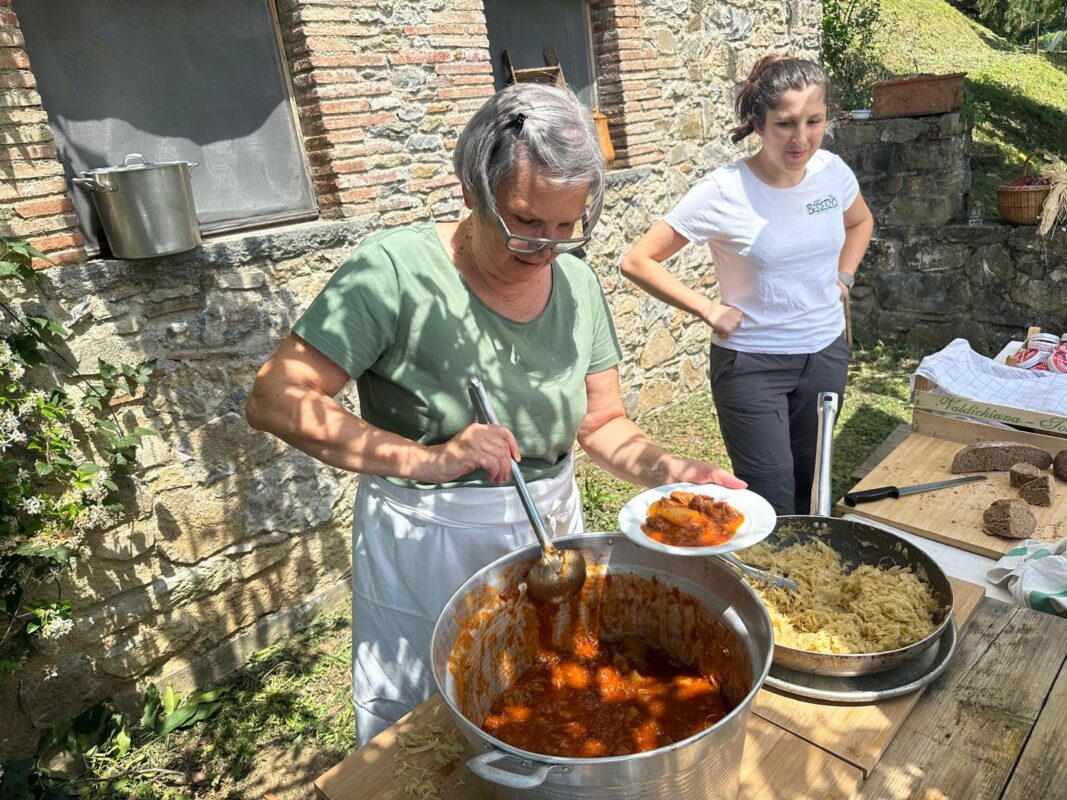Poi, lasciato il paese, i sentieri ci hanno condotto all’agriturismo Al Benefizio dove Francesca Bonagurelli ha preparato il rancio del soldato, utilizzando prodotti del territorio, per rendere ancora più unica questa passeggiata nella storia.