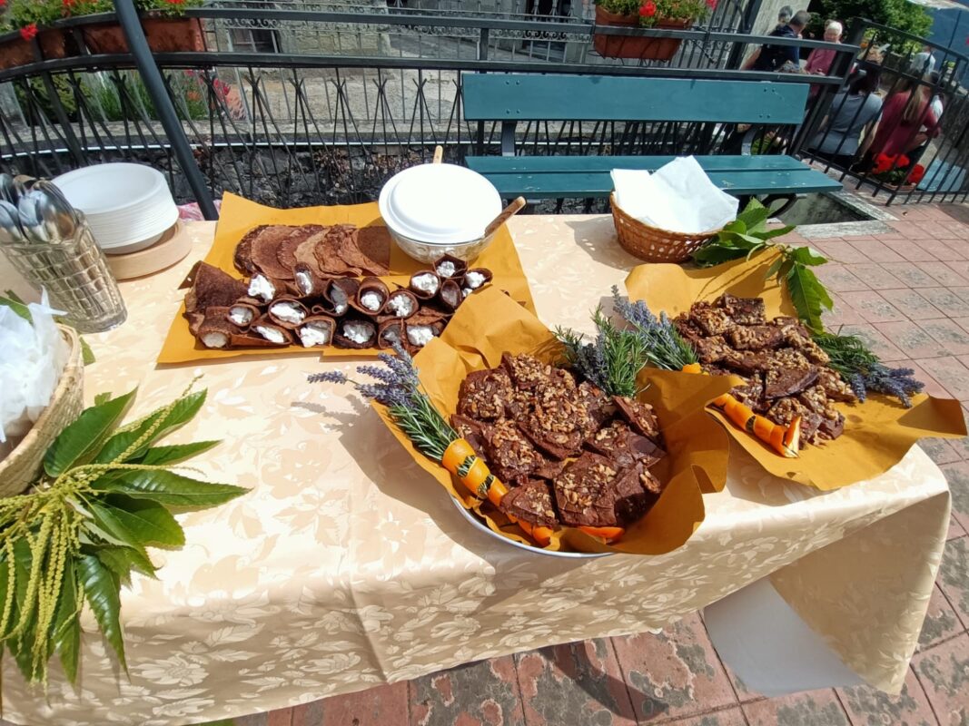 Il comitato paesano ha rifocillato i viaggiatori con un magnifico assaggio di cibi dell’epoca a base di uno degli unici prodotti del terreno allora esistenti, la castagna.