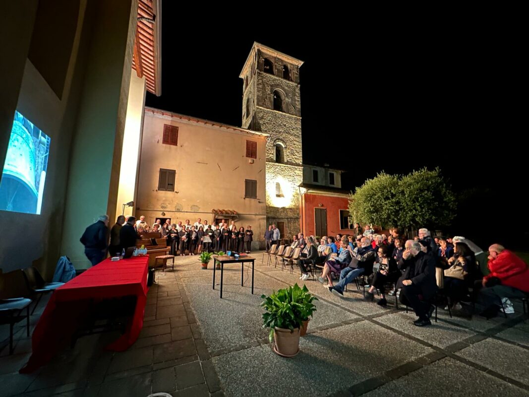 L’intervento della serata, condotto dallo storico locale Cristian Tognarelli e da Gabriella Pisani, direttrice della Corale parrocchiale, era dedicato agli organi, ai cori e alle campane della chiesa di San Pietro in Campo, e ha visto appunto la partecipazione del coro.