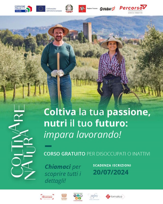 PROVINCIA DI LUCCA – Eccellenze del territorio e i presidi Slow Food: scadono sabato 20 luglio 2024 le iscrizioni a “Coltivare natura”, il corso per Addetto agli interventi tecnici ed agronomici sulle coltivazioni e alla gestione di impianti, macchine ed attrezzature, gratuito perché sostenuto dalla Regione Toscana con risorse a valere sul PR FSE+ Toscana 2021-2027 e inserito nell’ambito di Giovanisì (www.giovanisi.it), il progetto della Regione Toscana per l’autonomia dei giovani.