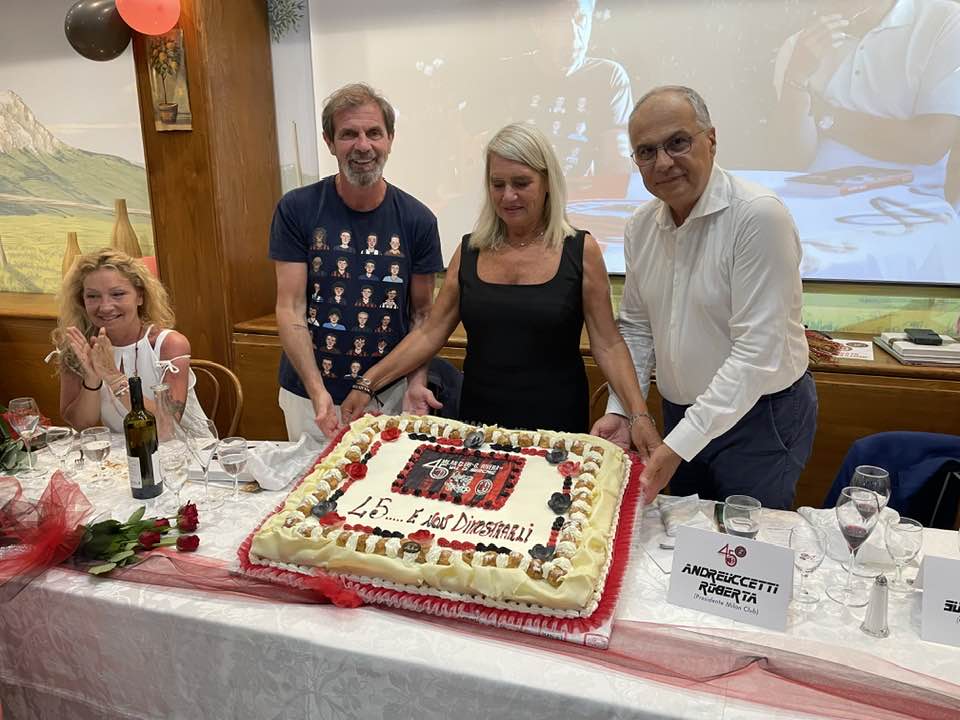 FORNACI – Non è stata solo una bella serata rossonera quella di sabato 13 luglio al ristorante la Lanterna di Castelnuovo Garfagnana. Un’ottima organizzazione ha centrato ancora una volta l’obiettivo prefissato: festeggiare i 45 anni del Milan club “Rivera val di Serchio” in maniera speciale impreziosendo la serata con due ospiti d’eccezione: Filippo Galli e Mauro Suma. La presidente del club Roberta Andreuccetti ha ringraziato i numerosi milanisti (quasi cento gli intervenuti), utilizzando lo slogan quanto mai appropriato “45…e non dimostrarli!”