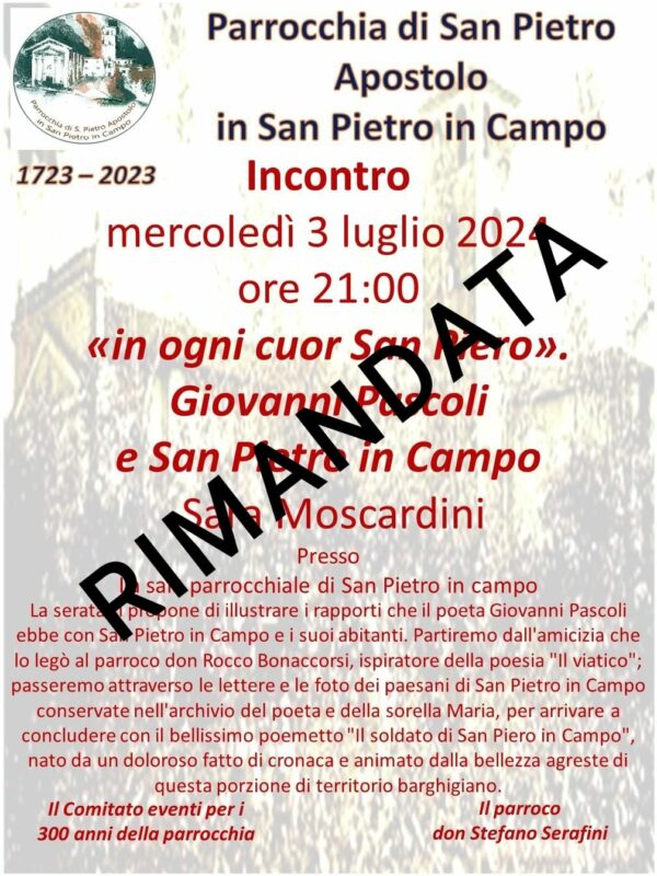 Pascoli e San Pietro in Campo, conferenza rimadata