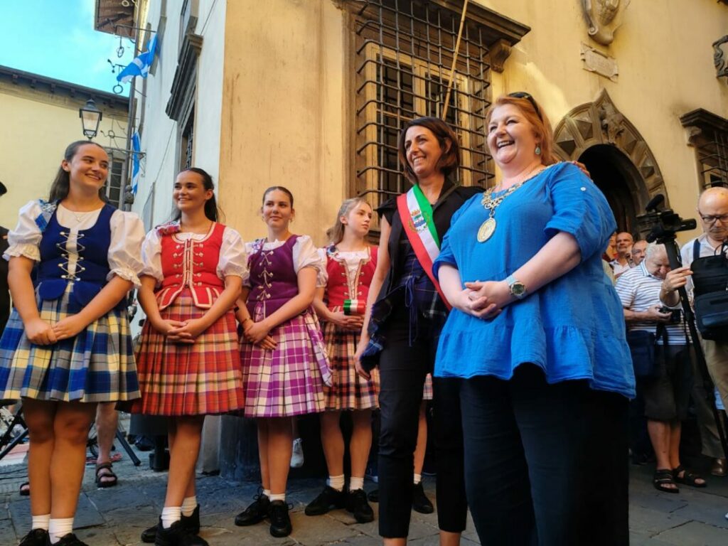 Anche se solo all’ultima parte della cerimonia, causa il ritardo del volo dalla Scozia, è arrivata alla fine anche la Lord Provost di Glasgow Jaqueline McLaren che insieme alla sindaca di Barga ha dato il via alla “tre giorni” al sapor di Scozia con il taglio del nastro tricolore in piazza Salvi.