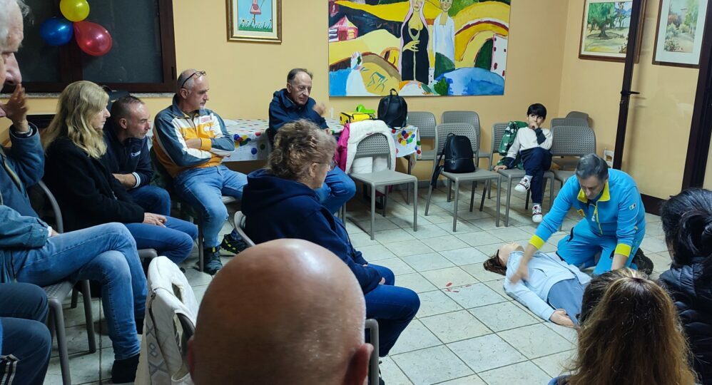 Grazie alla collaborazione del Comitato Paesano di San Pietro in Campo, più di 20 partecipanti hanno assistito alle lezioni teoriche e pratiche e si sono esercitati nella rianimazione e nell’utilizzo del DAE su manichini e con defibrillatori di esercitazione.