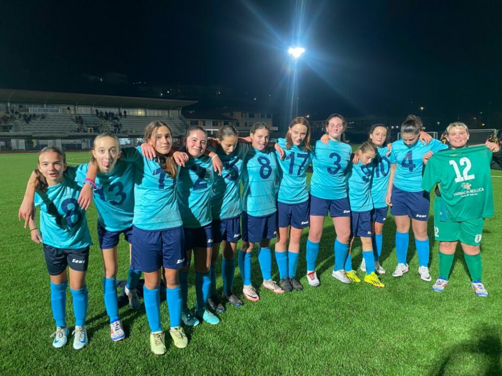 Crescita continua in termini di numero iscritte e sul campo per le Under 12 dei mister Quinto Cavani e Ivo Carrari: al loro primo campionatino (non agonistico vista la fascia di età 10-11 anni) di calcio a 7, sono impegnate ogni weekend contro avversari al maschile. Soprattutto in questa realtà, la crescita costante e settimanale, unito all’entusiasmo e al fairplay, sono il risultato più importante che raggiungono queste baby calciatrici.