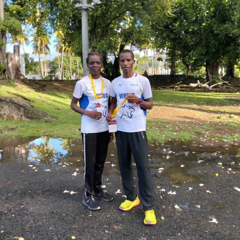 Successo internazionale per Boniface Fundi Njiru ( Virtus Lucca) e Clementine Mukandanga (GS Orecchiella Garfagnana) che vediamo insieme nella foto. Il keniano ha infatti vinto la mezza maratona de Fort de France imponendosi nel tempo di 1h.06’21” con quasi due minuti di vantaggio sul marocchino Mohamed Boutmazguine che ha chiuso in 1h.08’08”.