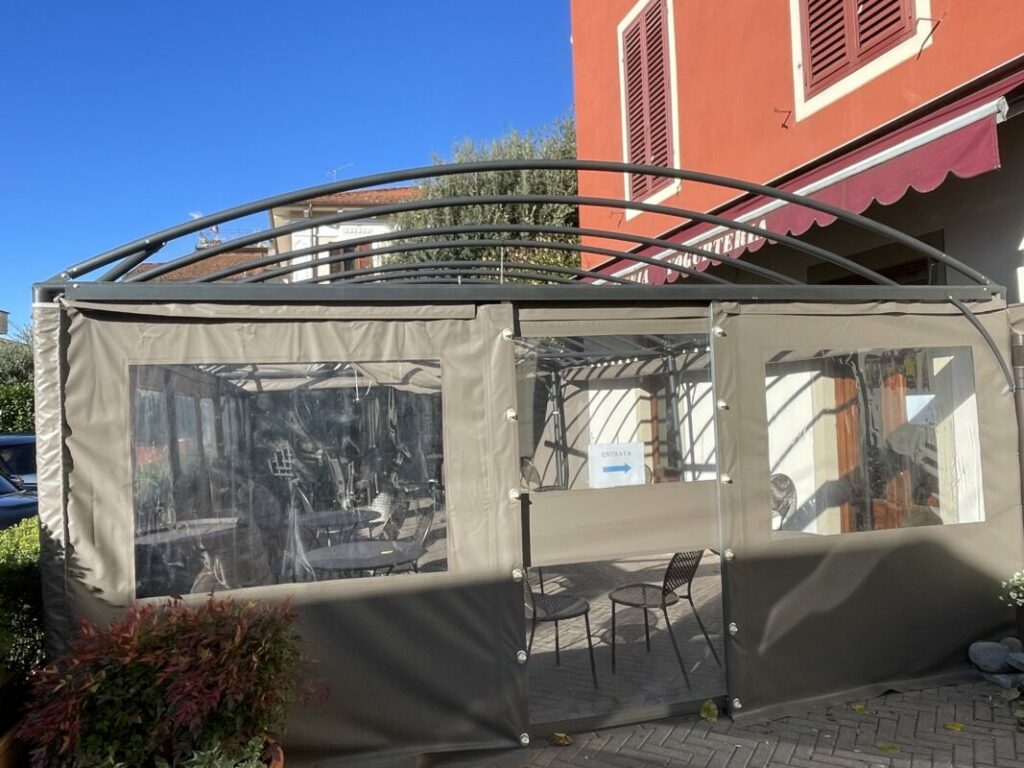 Tra i vari danni registrati, anche quelli alla veranda esterna della Pasticceria Lucchesi di Barga che è stata scoperchiata dalla forza delle raffiche.