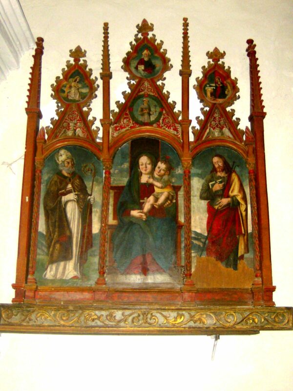 Tutto questo per raccogliere fondi destinati al restauro dell’interessante trittico in legno, datato 1503, di gusto tardo gotico, che presenta al centro la Madonna con il Bambino ed ai lati il vescovo San Prospero e l’apostolo San Giacomo il Maggiore. In alto, nelle cimase, l’Annunciazione e il Padre Eterno. Nella cuspide centrale è raffigurato un santo frate francescano, in attesa di una sua precisa identificazione dopo il restauro. In particolare si attende vedere se la pittura presenta le stimmate per identificarlo senza ombra di dubbio con San Francesco d’Assisi. Il trittico fu rubato a Borsigliana nella notte fra il 14 e 15 dicembre 1968, poi fortunatamente recuperato dal Nucleo tributario della Guardia di Finanza a San Terenzo di Lerici (La Spezia) nella primavera 1970. Si disse allora che il quadro fosse destinato ad una raccolta privata a Washington.