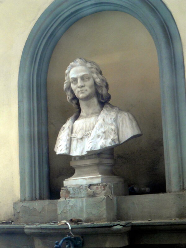 Con quest’ultimo passaggio del nostro racconto siamo arrivati a dover rivelare chi fu lo scultore del busto barghigiano di Cristoforo Colombo, ma prima dobbiamo ancora dire come nacque la reale idea. Abbiamo detto che la Società Colombo nacque nel 1893, stabilendosi in affitto nel palazzotto di cui parliamo, poi acquistandolo nell’aprile 1911 e questo fu l’atto che decise il busto, probabilmente avendolo già ordinato allo scultore con la fondata speranza che in quest’anno avrebbe potuto prendere in esame la sua sistemazione nei modi che ancora vediamo, infatti, poco dopo s’inaugura. Va comunque detto che c’è un indizio storico di non comune spessore che ci porta ad analizzarlo e che ci apre uno spaccato interessante per Barga, anche nell’ottica attuale di sistemazione di una piazza: quella del Giardino, poi intitolata a Giovanni Pascoli.