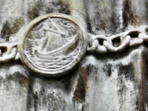 Infatti, tutti sappiamo che Barga ha la barca nello stemma, che lo scultore, di cui diremo il nome, fu invitato a voler scolpire sul busto, esattamente in quel medaglione che sta tra due catenelle che servono da aggancio per mantenere uniti i due lembi dell’ermellino che è sulle spalle di Colombo. Tutto quanto si è detto ora, circa questo particolare del busto che misero gli emigranti all’ingresso della loro casa comune in Barga, appunto, alla loro Società Cristoforo Colombo, perché il marmo sta all’altezza di circa quattro metri, non è ben visibile al passeggero ma occorre sapere che c’è per distinguerlo.