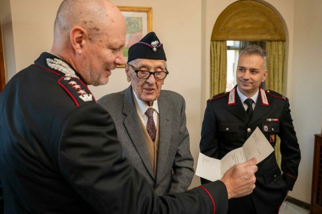 GALLICANO – Il Carabiniere Fulvio Infante he vive a Gallicano, con i suoi 101 oggi festeggia un compleanno davvero speciale che lo rende più che centenario. A rendergli omaggio con una piccola cerimonia, portando gli auguri di tutta l’Istituzione, il Comandante Provinciale di Lucca, Colonnello Arturo Sessa, il Comandante della Compagnia Carabinieri di Castelnuovo di Garfagnana, Maggiore Biagio Oddo e il Comandante della Stazione di Gallicano, Maresciallo Tiziano Pennacchi.