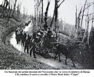 Quando il treno giunse a Fornaci di Barga era notte e ad attendere la salma tutta una popolazione afflitta come non mai. Scesa la cassa sorretta dagli studenti, ecco farsi avanti il carro funebre condotto da “Ciapo”, Pietro Betti, lì arrivato per l’ovvio ordine della Misericordia di Barga, che nel pomeriggio, alle 16,00, con il suono della campana, aveva avvisato i confratelli che si erano resi disponibili, affinché si preparassero all’uscita funebre per il confratello Giovanni Pascoli, con Maria, iscritto al sodalizio sin dal 1897. Non era, però, una normale “gita funebre” perché bisognava andare a riceverlo alla stazione di Fornaci di Barga per accompagnarlo alla sepoltura a Barga. Tra l’altro il tempo non era dei migliori anzi, tutt’altro.