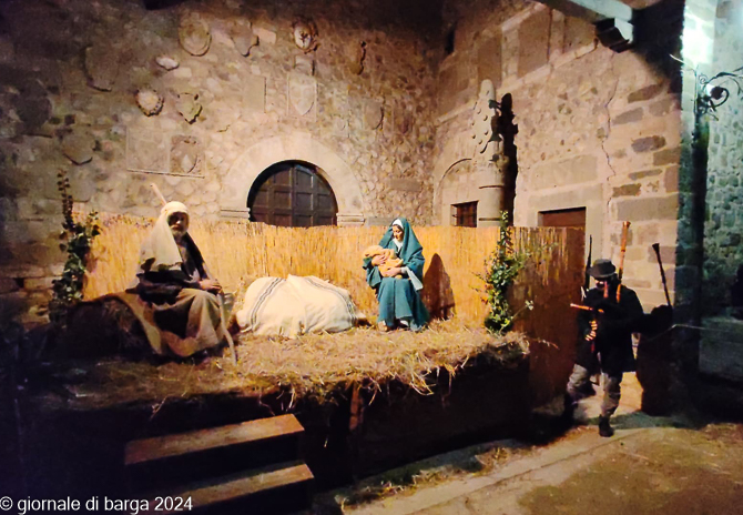 Questo e tanto altro lungo via del Pretorio. Ad arricchire il tutto in musica, i musicanti della Filarmonica Luporini di Barga e, ad aprire la strada alla Sacra Famiglia, lo zampognaro Dario Landi. Sacra famiglia impersonata da Giorgio cella con la moglie Monica Simi e poi completata dalla natività dalla piccola Iris Bertolini nelle vesti di Gesù Bambino e con il simpatico asinello, messo a disposizione da Federico Biagioni.