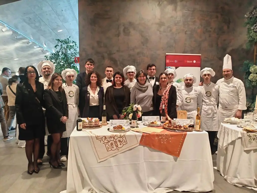 FIRENZE – Gli istituti alberghieri “Pieroni” di Barga e “Marconi” di Seravezza, accompagnati da Cna Lucca, sono stati protagonisti a Firenze per i venticinque anni di Vetrina Toscana: realtà che ha celebrato un quarto di secolo sempre dalla parte dei ristoratori e dei produttori toscani come i numeri certificano: 2000 le imprese aderenti, 360 gli eventi annuali, 500 le schede sui prodotti tipici, 400 le ricette tradizionali, 43 mila i follower, 1929 le uscite sui media nel 2024. Un impegno quotidiano per raccontare la Toscana attraverso il cibo di qualità.