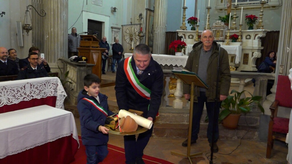 Quest’anno è toccato al giovane Francesco Mori che prima ha ricevuto l’omaggio e il passaggio di consegne dal sindaco Gaspari e poi il riconoscimento in sala del consiglio alla presenza della vicaria e delle autorità cittadine. Poi il giovane Francesco, accompagnato da genitori e e autorità, è stato salutato ufficialmente anche dalla Filarmonica Alpina di Castiglione diretta dal maestro Silvano Marcalli. Infine tutti in corteo con le note della filarmonica verso la chiesa di San Michele dove durante la Santa Messa Officiata da Don Riccardo Micheli c’è stata la donazione, “il regalo” rinnovando così l’impegno preso quasi 4 secoli fa. Quest’anno poco prima dell’inizio della manifestazione è stato salutato il professor Luigi Lucchesi, per aver ottenuto dal Presidente Mattarella l’Onorificenza dell’Ordine al Merito della Repubblica Italiana. Al professore vanno i nostri sinceri rallegramenti per il titolo di Cavaliere della Repubblica.