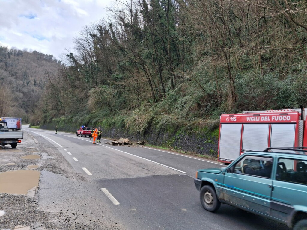 L’allerta meteo arancione prevista in questi due giorni per dissesto idrogeologico ha portato in eredità una frana che ha interessato la strada Lodovica in località Salita nel comune di Borgo a Mozzano. È avvenuta a metà mattinata, poco prima del Ponte di Calavorno. Dei grossi massi sono caduti sulla carreggiata, occupando la strada in direzione Lucca.