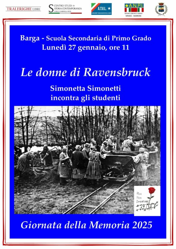 BARGA – Per la Giornata della Memoria, il prossimo lunedì 27 gennaio, si terrà un incontro, dal titolo “Le donne di Ravensbrück” con gli studenti della scuola secondaria di primo grado “A. Magri” promosso dal comune di Barga in collaborazione con il centro studi di storia contemporanea Carlo Gabrielli Rosi; Tra le Righe Libri, l’associazione Toscana Volontari per la Liberta e con l’ANPI Sezione di Barga “Mrakic – Marroni”