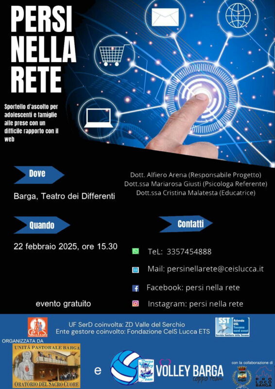 Persi nella rete è un progetto promosso dal Serd Zd Valle del Serchio ed attuato sul territorio dalla Fondazione CelS Lucca ETS.