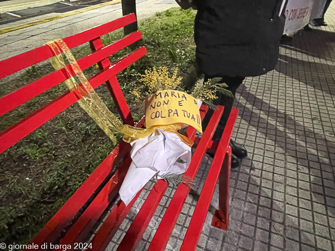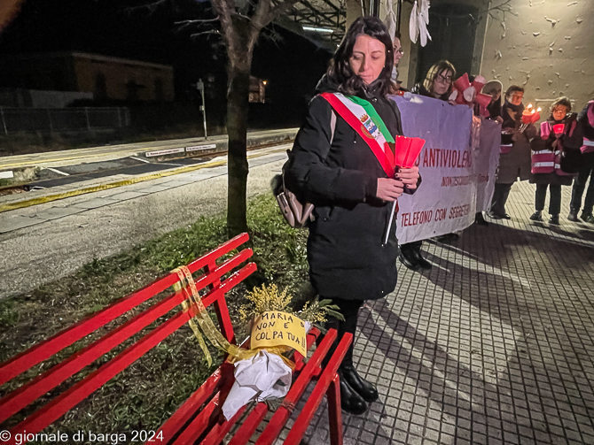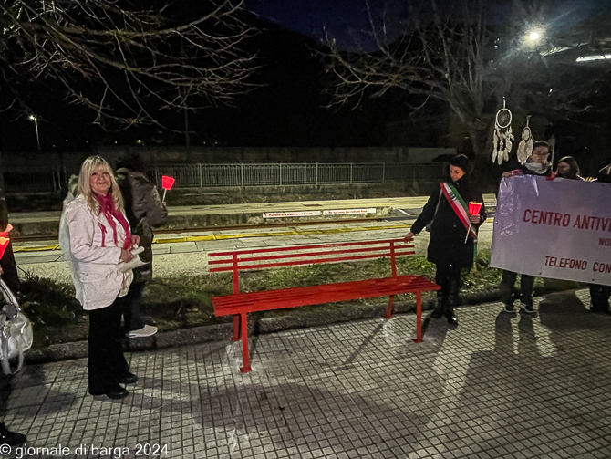 La fiaccolata, partita dal Cinema Puccini di Fornaci all’imbrunire, si è fermata proprio nel punto in cui Maria ha perso la vita; un minuto di preghiera e silenziosa riflessione per poi ripartire fino al piazzale della Stazione dove è stata scoperta la centotrentasettesima panchina rossa della Valle; una delle tante panchine rosse che non solo sono ricordo delle donne che non ci sono più ma un vero e proprio faro nella nebbia per le vittime di violenza. Che spesso proprio sapendo di queste cerimonie trovano il coraggio di farsi sentire