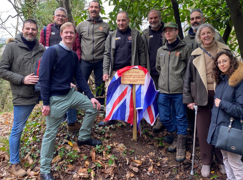 Dopo pranzo ci siamo spostati sul punto esatto del crash point dello Spitfire, dove Hellen e George, con grande commozione, hanno scoperto una targa a ricordo dell’evento del 13 Febbraio 1945.