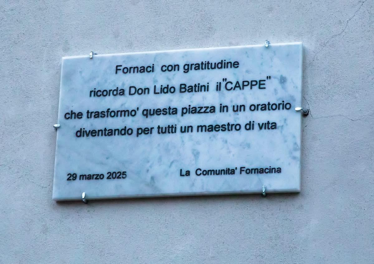 FIORNACI – Sabato 29 marzo dopo la celebrazione della Santa Messa del pomeriggio, in piazza della chiesa in Fornaci vecchia, c’è stata l’inaugurazione di una targa in ricordo di Don Lido Batini, il “Cappe”.