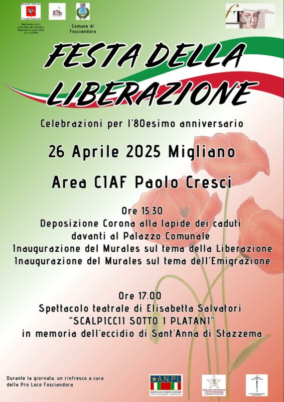 MIGLIANO – Sabato 26 aprile a Migliano di Fosciandora si svolgerà il secondo evento legato alle celebrazioni dell’80° anniversario della Liberazione dal nazifascismo, realizzato con il contributo del Consiglio Regionale della Toscana ai sensi della L.R. n. 3/2024.