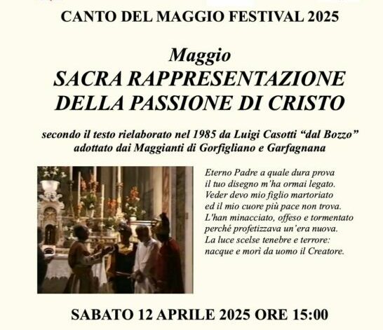 GORFIGLIANO – Sabato 12 Aprile alle ore 15 presso la Sala Pancetti a Gorfigliano verrà cantata la Sacra Rappresentazione della Passione di Cristo, Maggio proposto dall’Associazione Culturale Paese Vecchio di Gorfigliano, dal Museo dell’Identità dell’Alta Garfagnana e dal Comune di Minucciano, e inserito nel cartellone del Canto del Maggio Festival: un percorso nella scuola, nella cultura, nella tradizione, progetto volto a recuperare la tradizione unica del Maggio, ideato dall’Associazione La Giubba con il Museo Italiano dell’Immaginario Folklorico e l’Istituto Comprensivo di Piazza al Serchio, con il contributo di Fondazione CRL e Parco Nazionale dell’Appennino Tosco Emiliano.