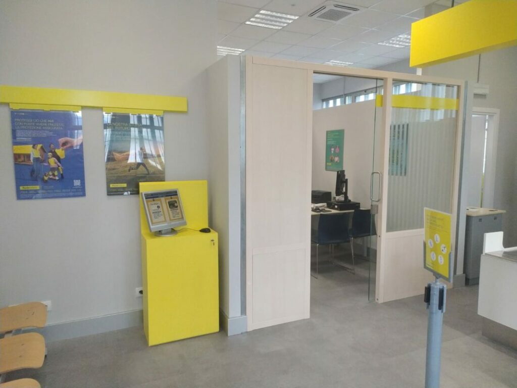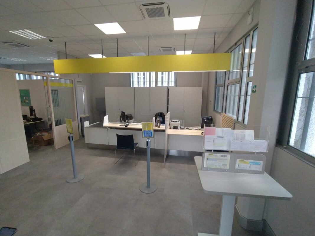 Nell’ambito degli interventi, si è proceduto a una completa riorganizzazione degli spazi finalizzata a ottimizzare la fruizione dell’ufficio con particolare attenzione al miglioramento del confort ambientale e alla facilitazione dell’accesso ai servizi. In quest’ottica, tra le altre opere, si inseriscono la nuova configurazione della linea di sportelleria, con altezze ribassate per agevolare tutti i segmenti di clientela e postazione di lavoro ergonomica per favorire una corretta postura.