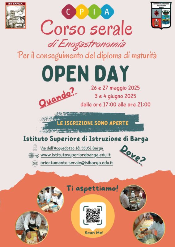 Per maggiori informazioni; ISI Barga – Via dell’Acquedotto, 18 – Barga . info: orientamento.serale@isibarga.edu.it