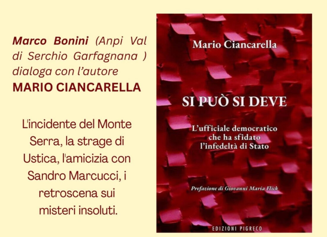 FOSCIANDORA – Domenica 25 maggio alle 17:30 a Migliano di Fosciandora, nella sala Ciaf “Vladimiro Zucchi”, sarà presentato il libro di Mario Ciancarella “Si può si deve. L’ufficiale democratico che ha sfidato l’infedeltà di Stato.”