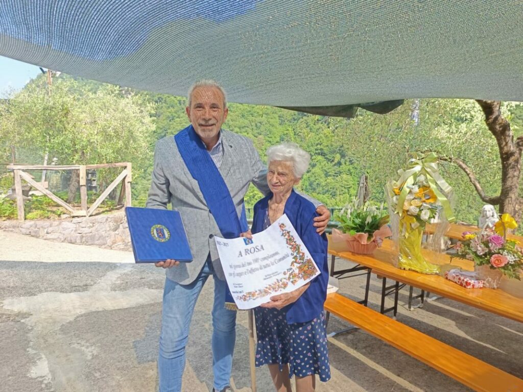 Lucida e davvero in gamba, Rosa, è stata doppiamente festeggiata anche dalle istituzioni. Prima per lei gli auguri con tanto di pergamene dal sindaco di Fabbriche di Vergemoli Michele Giannini, accompagnato dal Governatore della Misericordia di Borgo a Mozzano Gabriele Brunini ed anche dai componenti della sezione della Val di Turrire con Sergio Togneri. Poi anche gli auguri che ha voluto farle l’Amministrazione Provinciale di Lucca che le ha recato un’altra pergamena con il consigliere Provinciale Pietro Onesti. Insomma, sicuramente il compleanno di Rosa ieri non è passato inosservato.