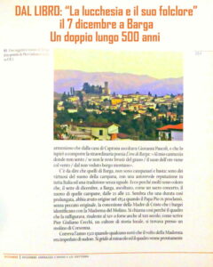 Ricordo ancora quando pubblicò nel 2016 l’interessante libro “La Lucchesia e il suo folklore”, impostato come fosse un calendario degli appuntamenti con le tradizioni lucchesi, in cui volle due memorie di Barga. Una circa la leggenda di San Cristoforo, cui il barghigiano, così narra la leggenda, alla gigantesca statua di legno avesse segato le gambe per farla entrare nella sua nicchia, soggiungendo anche che forse lo fece per evitare fuggisse dalla chiesa; l’altra sullo storico Doppio della Concezione e questi a seguire sono i titoli:
