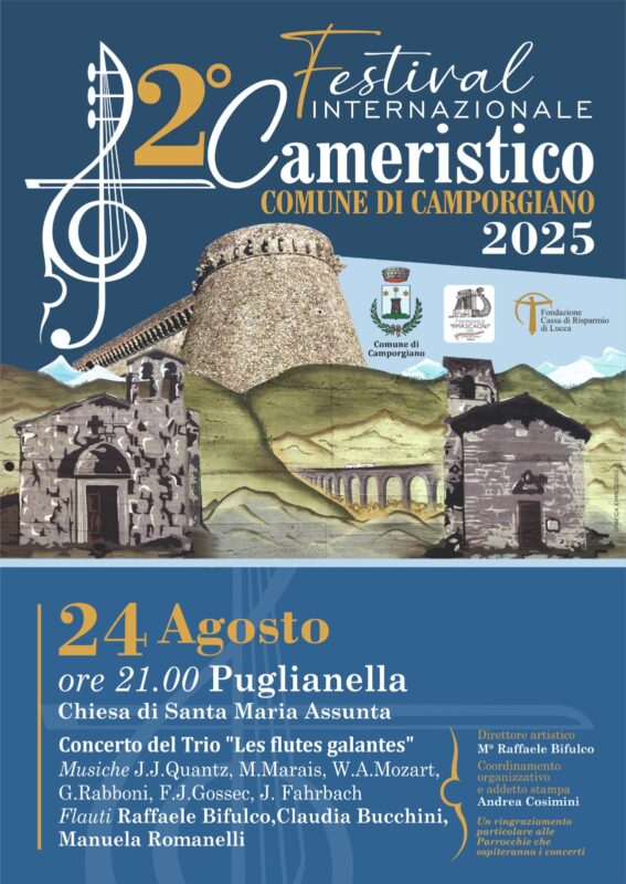 “È stata un’edizione davvero memorabile – afferma il Sindaco del Comune di Camporgiano Francesco Pifferi – che ci ha permesso di ascoltare musiche di grandi compositori del passato in cornici suggestive e caratteristiche. Piazze e luoghi di culto che meritano di essere scoperti e valorizzati, soprattutto in questo anno giubilare. Il concerto di Puglianella sarà un ulteriore capitolo di questa affascinante storia capace di unire cultura e bellezza alla promozione del territorio”.