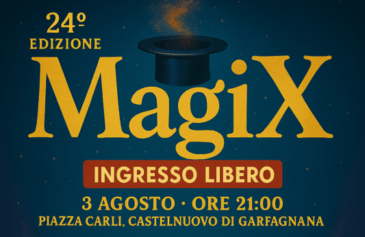 CASTELNUOVO – A Castelnuovo la XXIV edizione del festival della magia Magix domenica 3 agosto (piazza Luigi Carli) alle 21