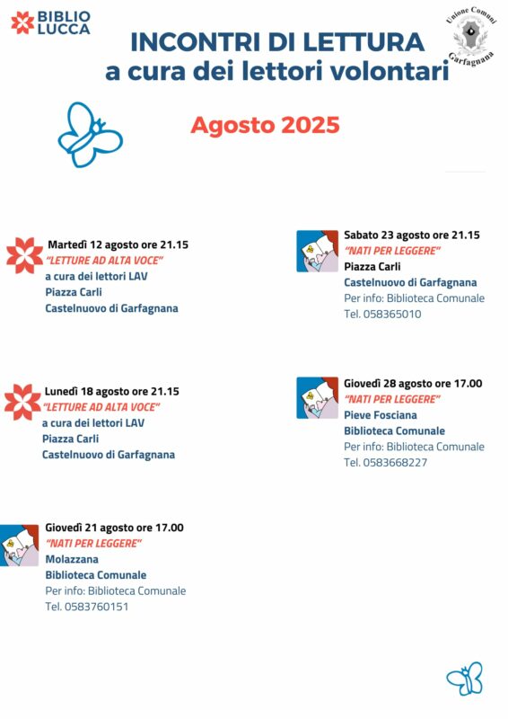GARFAGNANA – Nel mese di agosto tornano gli incontri con i lettori volontari.