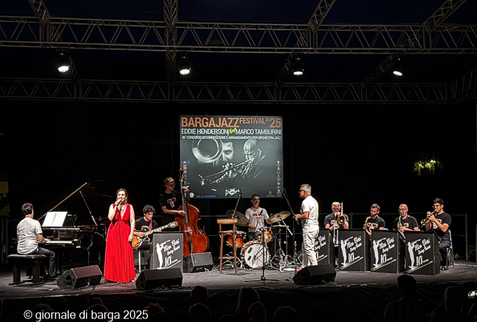 BARGA – La giornata del Barga IN jazz si è chiusa ieri sera in bellezza nella splendida cornice di Villa Moorings, dove un numeroso pubblico si è ritrovato e si è fatto trascinare dallo swing di un’orchestra davvero speciale, la Nico Gori swing 10tet che è tornata a Barga per festeggiare il decimo anniversario del gruppo. Con Nico Gori al clarinetto e alla direzione dell’ensemble si sono esibiti Michela Lombardi alla voce, Renzo Cristiano Telloli al sax alto, Francesco Felici al sax tenore, Tommaso Iacoviello alla tromba, Silvio Bernardi al trombone, Federico Frassi al pianoforte, Matteo Anelli al contrabbasso, Vladimiro Carboni alla batteria, Mattia Donati alla chitarra, che ha poi regalato al pubblico anche la sua splendida voce, Iacopo Crudeli nel ruolo di speaker.