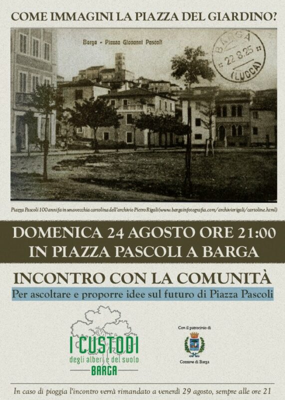 Su questo tema, inerente la futura rivisitazione di Piazza Pascoli, organizzano un incontro pubblico i Custodi degli Alberi e del Suolo, con il patrocinio dell’Amministrazione Comunale. Un incontro con la comunità per ascoltare e proporre idee sul futuro di Piazza Pascoli