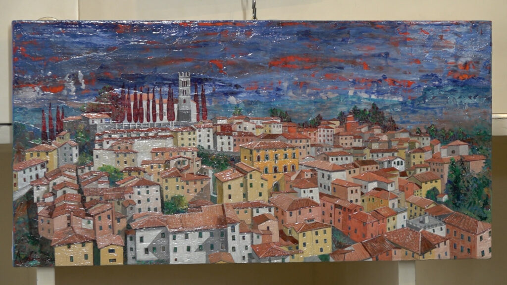 Tante le opere esposte, un vero e proprio tripudio di Barga, da sempre il soggetto preferito delle opere di Alba, molto legata alla sua terra. Alba è dunque la pittrice di Barga, dei suoi paesaggi, delle sue vedute più belle e lo fa in una maniera particolare, con una tecnica unica. Dipingere paesaggi della cittadina potrebbe far pensare alla lunga ad un lavoro ripetitivo, ma con Alba non è mai così. Barga assume ogni volta un aspetto diverso, una sfumatura nuova, un’atmosfera piena di fascino che ti entra nel cuore; queste sono opere che fanno scoprire attraverso gli occhi dell’artista, un luogo che ogni volta è nuovo.