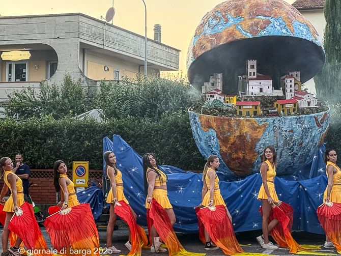 E’ stato presentato il carro allegorico che ha partecipato alla sfilata del luglio scorso dedicato all’amicizia ed all’accoglienza dei popoli, dedicato all’immigrazione ed all’emigrazione; con Barga sempre e per sempre al centro di questo peregrinare. Tema più azzeccato non poteva esserci per l’occasione con applausi e commozione quando il grande mappamondo si è aperto con al centro i luoghi più belli di Barga. Molti applausi anche per il corpo di ballo che ha presentato una bella coreografia diretta da Sonia Guidi. Un grosso grazie a tutti i presenti del rione Real Piangrande per il gradito omaggio.