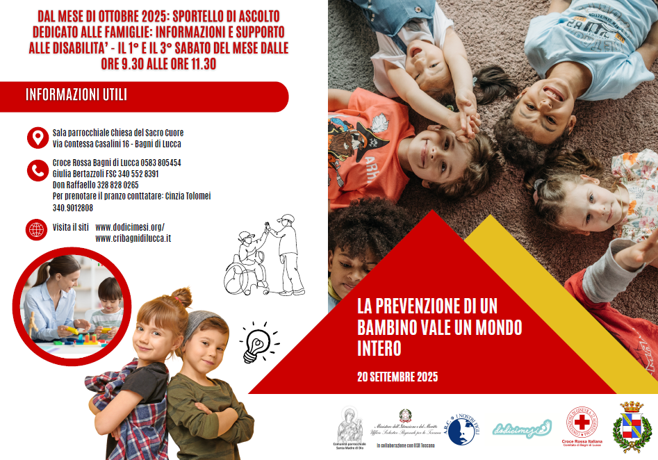 BAGNI DI LUCCA – Il 20 settembre 2025 avrà luogo nei locali parrocchiali di via Contessa Casalini il convegno su disabilità e diagnosi precoce organizzato dalla Comunità parrocchiale e dalla Croce Rossa di Bagni di Lucca.