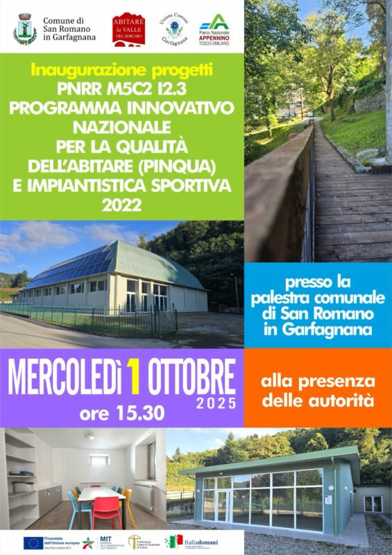 Mercoledì 1 ottobre alle ore 15.30, presso la palestra comunale di San Romano in Garfagnana, verranno inaugurati gli interventi del PINQuA “Abitare la Valle del Serchio”, il programma di investimenti previsto dal PNRR, promosso dal Ministero delle Infrastrutture, che vede coinvolta la Regione Toscana – in qualità di soggetto beneficiario – la quale si avvale, per l’attuazione, delle proposte progettuali dell’Unione Comuni Garfagnana.