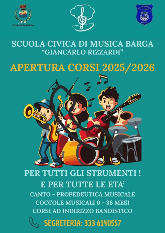 BARGA – La Scuola Civica di Musica Barga riapre i battenti nel senso che sono aperte le iscrizioni ai corsi musicali per l’anno accademico 2025/26.