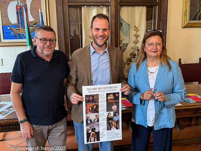BARGA – Un cartellone della stagione di prosa al Differenti di Barga particolarmente centrato in tutto: nella varietà delle proposte, nell’importanza, nel valore ed anche nella notorietà dei protagonisti, nella qualità degli spettacoli che mettono insieme attualità, divertimento, temi di riflessione di questo secolo, ironia e tanto altro. Insomma, per dirla come la direttrice della Fondazione Toscana Spettacolo onlus, Patrizia Coletta, presente alla conferenza stampa di presentazione nella sala consiliare del Comune di Barga, Fondazione Toscana Spettacolo e Comune di Barga, grazie al lavoro in sinergia (che vede tra i principali protagonisti per l’amministrazione Flavio Guidi dell’ufficio Cultura ndr), è stato creato il miglior distillato della produzione italiana teatrale.